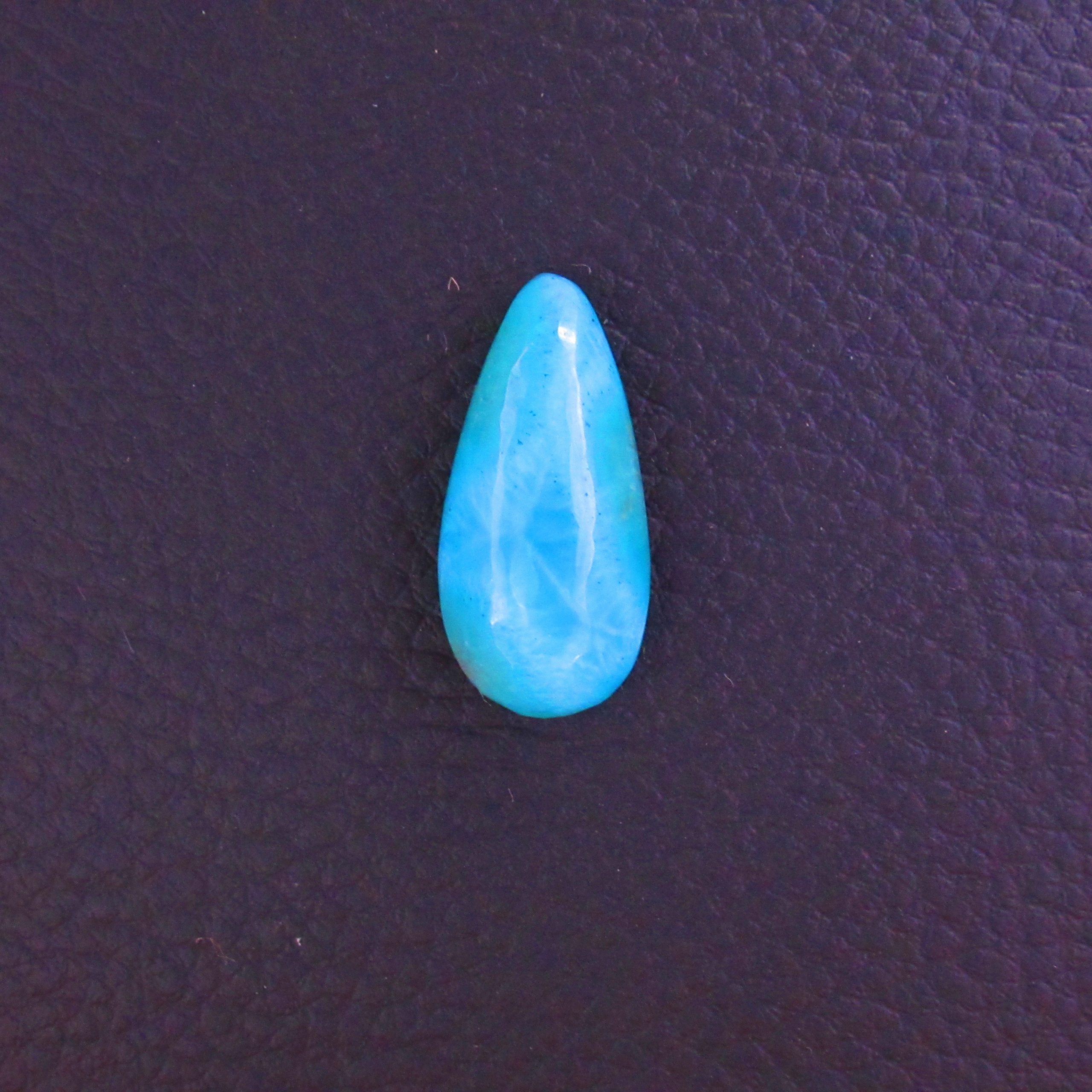 Magnifique cabochon en Larimar AAA en forme de goutte, à la teinte bleu soutenu typique des plus belles pierres de République dominicaine.