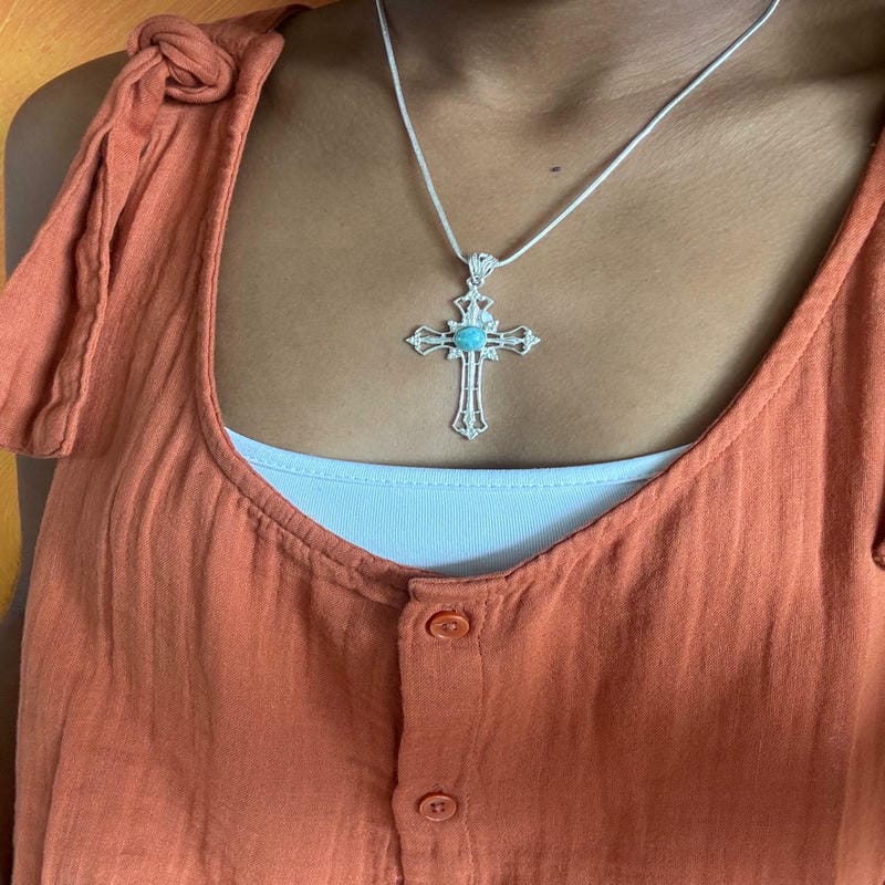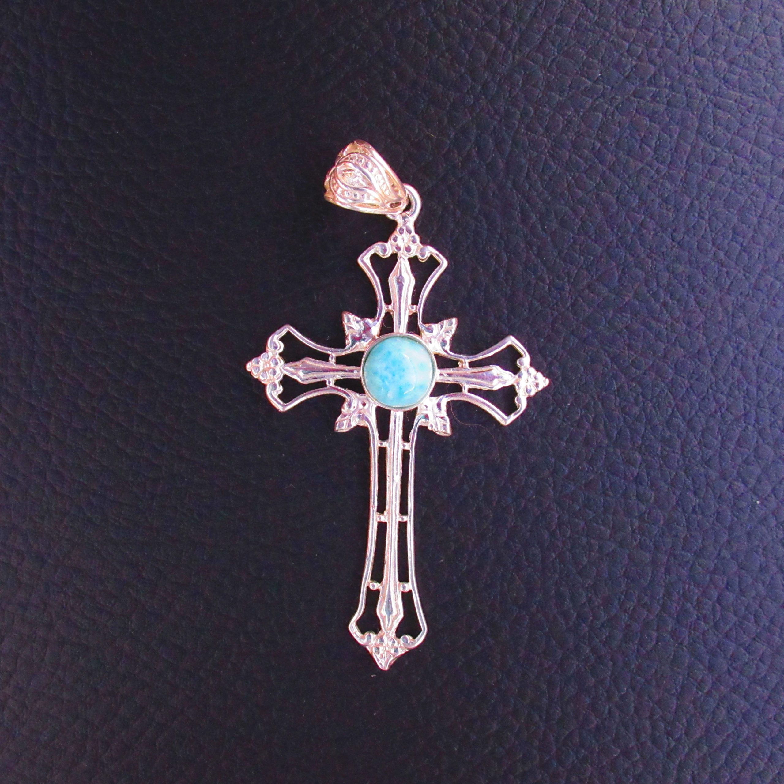 Pendentif Croix ajourée – Larimar AA et Argent 925, pièce unique