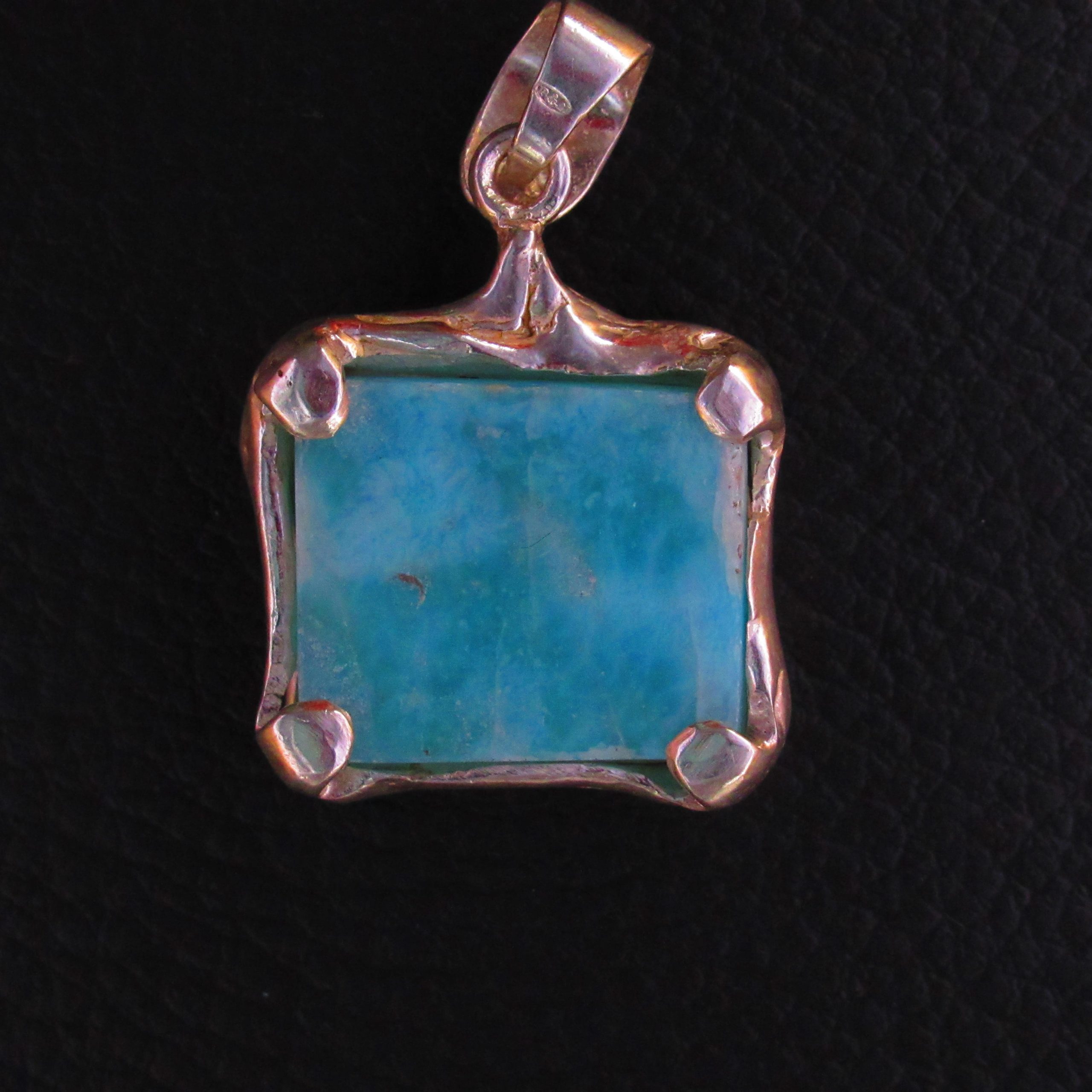 Ce pendentif unique en Larimar AA révèle toute la beauté naturelle de cette pierre des Caraïbes.