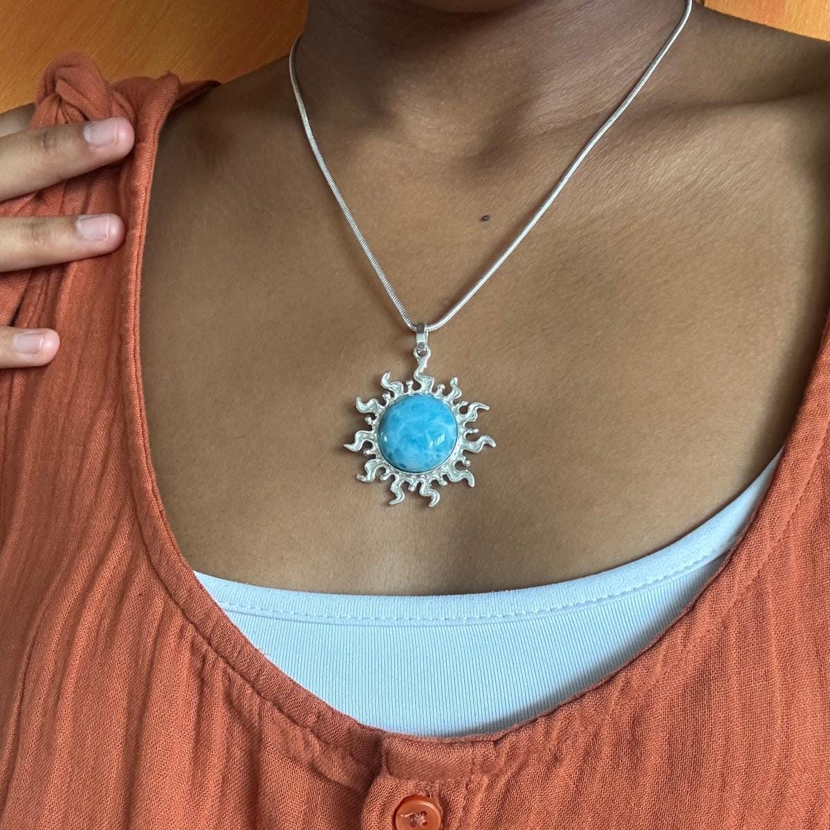 L’éclat de l’argent 925 met en valeur la lumière intérieure du Larimar, offrant un bijou vibrant et apaisant à la fois.
